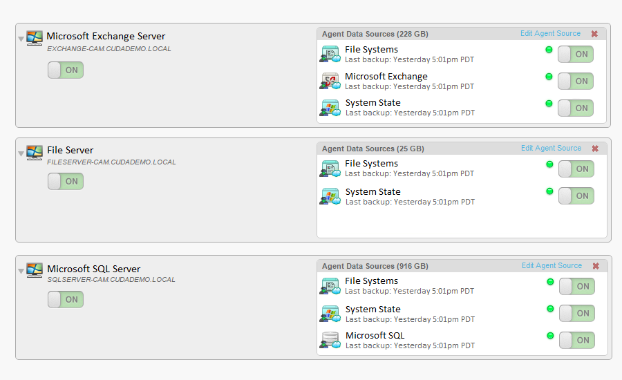 Proteja todos os seus ambientes, incluindo servidores de arquivos, servidores virtuais (VM e Hyper-V), bancos de dados SQL, Microsoft Exchange e até mesmo o Office 365.
